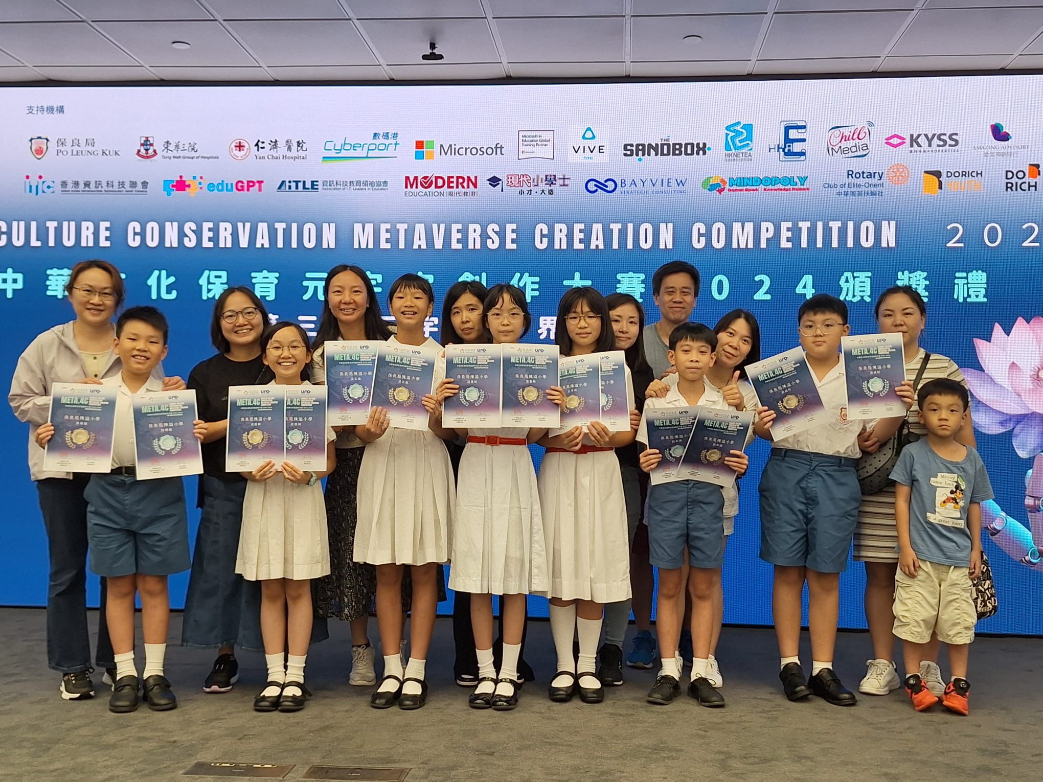 本校同學趙藹穎、王貝琪、梁芷嵐、陳明禮、湯蔓晞、張銘軒、劉卓謙在7月參加由「香港兒童基金會」主辦的「香港學屆元宇宙創作大賽」,作品獲得評判欣賞,獲得小學組「優異獎」和「最佳協作團隊獎」。