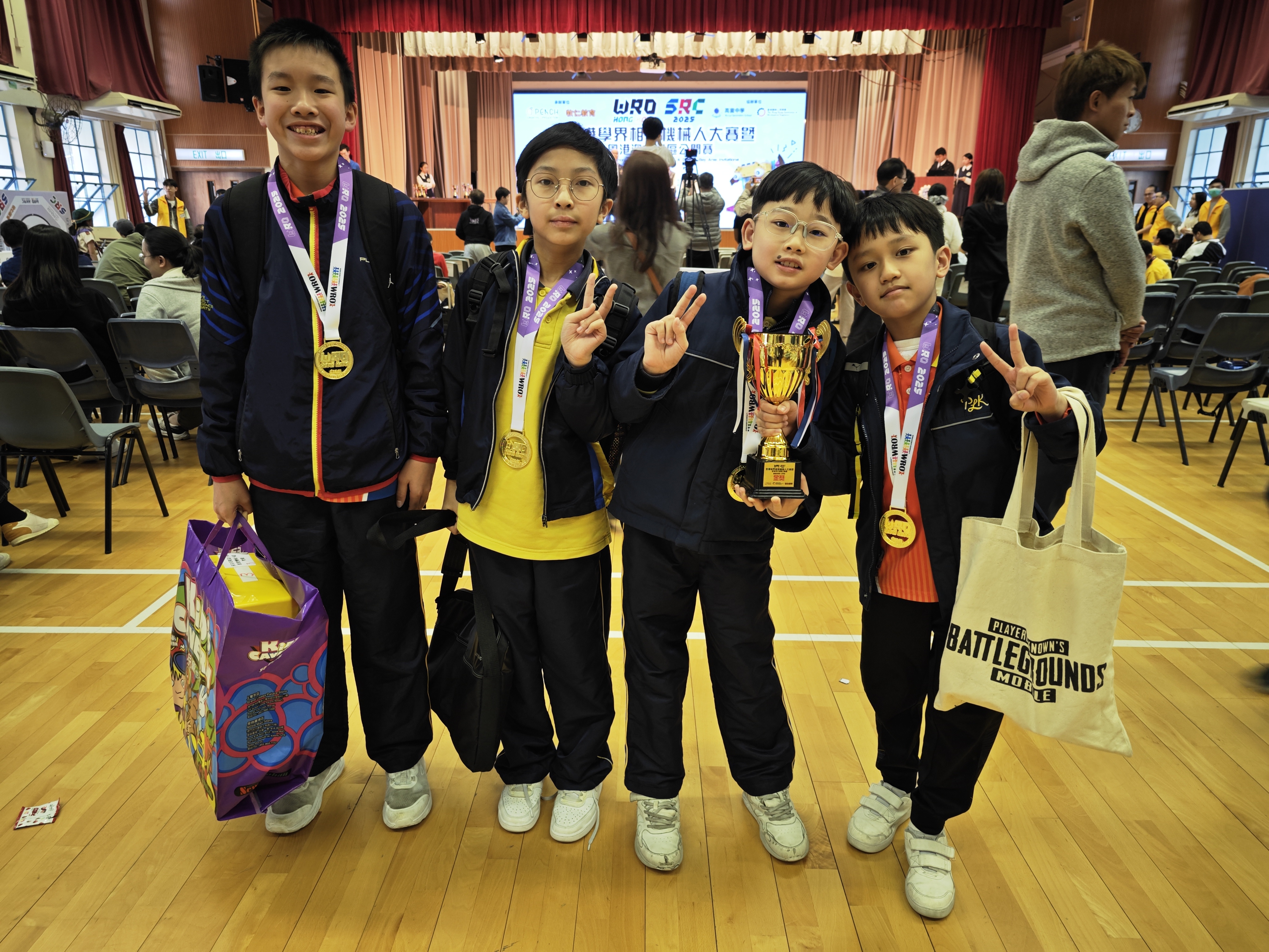 本校創意機械小組成員:5B袁晉韜、5D廖信謙、6A黃稀攸和6D李卓諾參與由世界奧林匹克機械人競賽香港區組委會主辦的「全港學界相撲機械人大賽2025」並榮獲金獎。